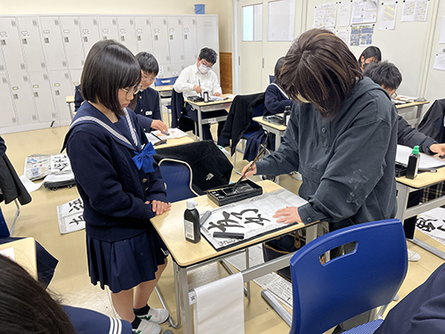 【中1】書写の授業「書き初め」