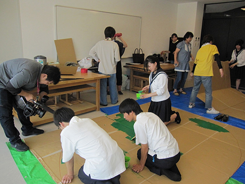 7月7日にはフェスタで使用する大道具の作成のお手伝いをしました。実行委員会の方には高校生の意見もくみ上げていただき、フェスタ当日には高校生がダンスを披露したり、壮大な絵本劇の舞台裏で活躍させていただく予定です。
