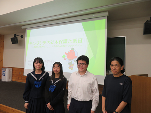 中学3年生の研究チームは、課題研究「テングシデの幼木保護と調査~奇跡の木を大切にして、世界中の人に知ってもらいたい~」についての中間発表を行いました。この発表は中学1年生にとってよいお手本になったと思います。
