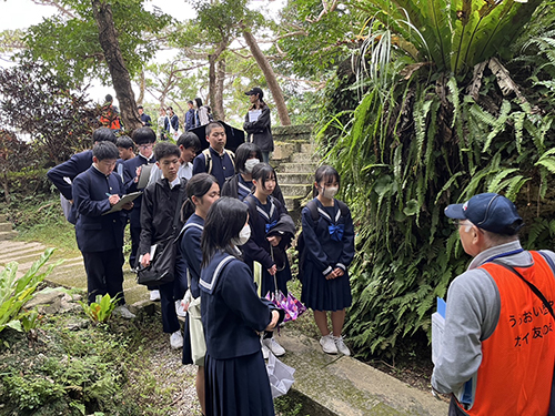 そこでは、「おきなわ世界塾の平和・交流プログラム」として、浦添城跡をボランティアガイドの方から沖縄戦のお話を聞きました。