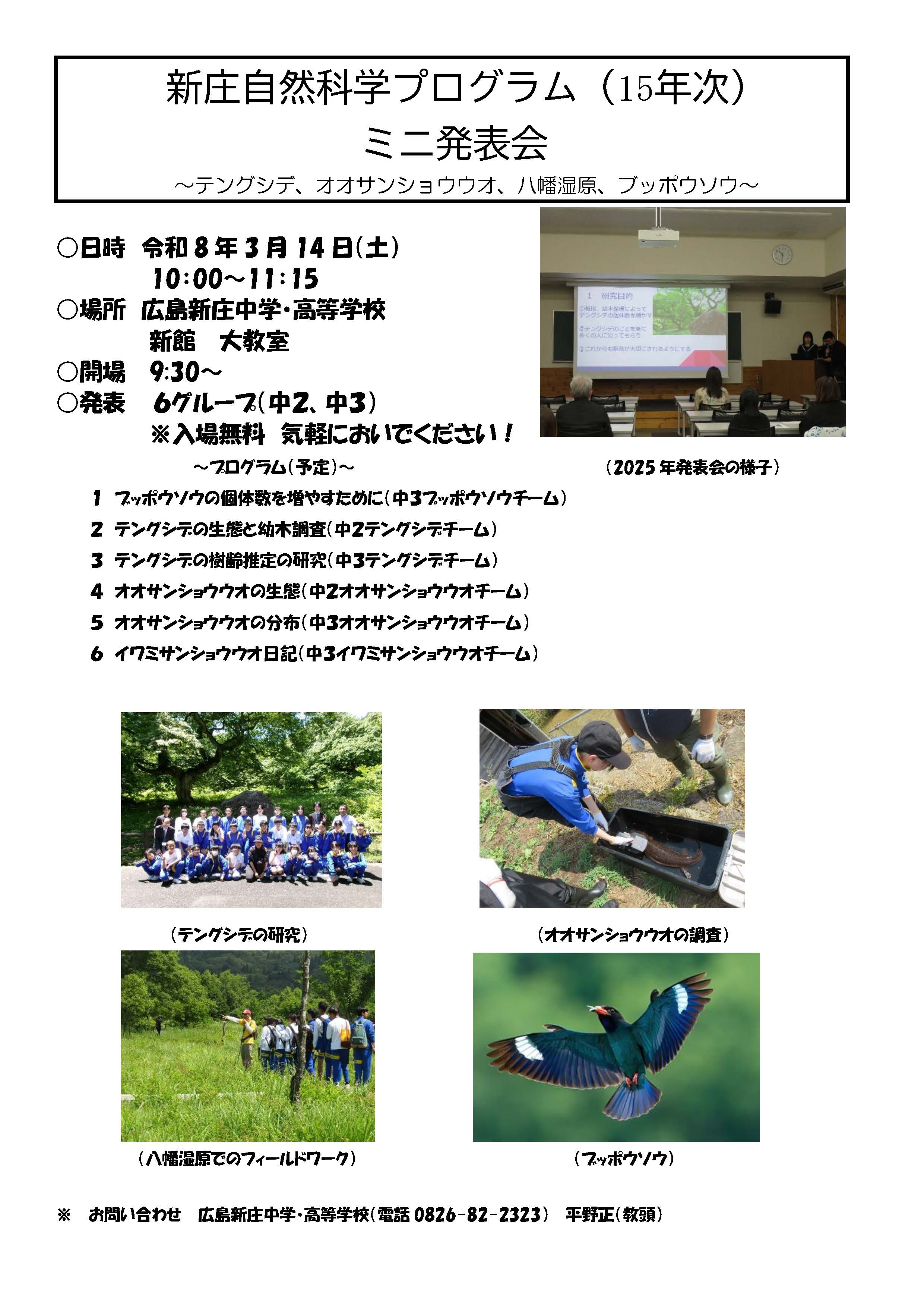 今年度15年次となった、新庄自然科学プログラムのミニ発表会を次のように実施します。
