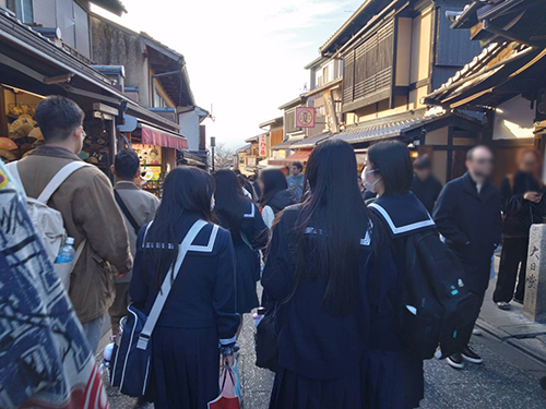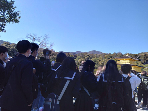 3月16日(月) 未来デザインコース2年生が修学旅行に出発しました。2泊3日で関西方面です。 初日は、京都で金閣寺や清水寺の見学をしました。天気にも恵まれ楽しい1日目だったようです。この日は大阪に宿泊しました。 2日目はユニバーサルスタジオジャパンです。