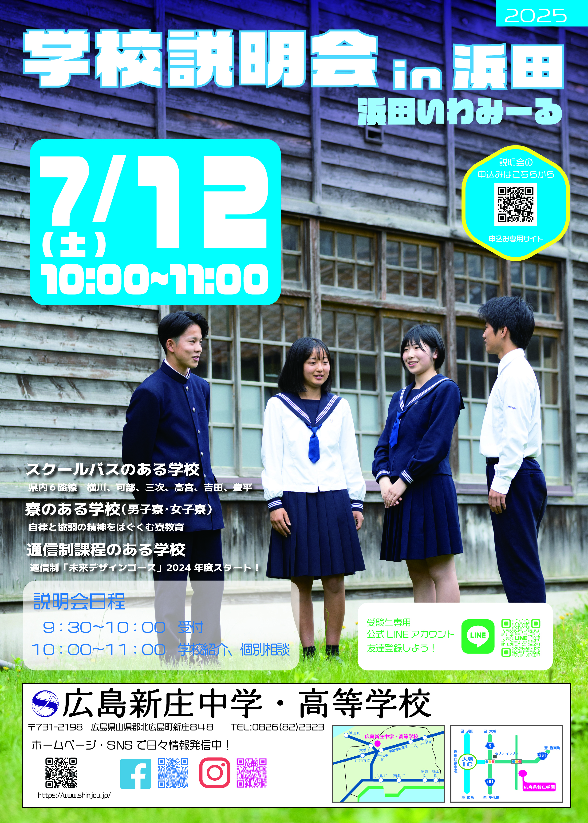 7月12日(土)に島根県浜田市で学校説明会を開催します。