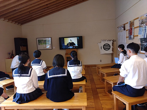 午後からは、戦国の庭歴史館の見学をしました。この歴史館は、本校開校のきっかけになった戦国武将吉川元春公を中心に展示してあります。また隣接する吉川元春館跡でのフィールドワークも行いました。佐々木学芸員からのお話は大変興味深かったようです。