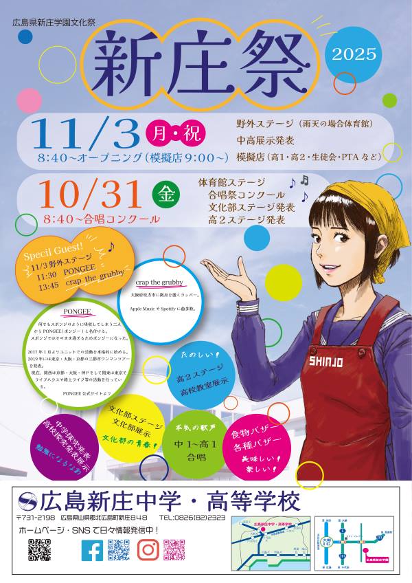 10月31日(金)および11月3日(月祝)に令和7年度新庄学園文化祭「新庄祭」を行います。