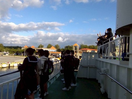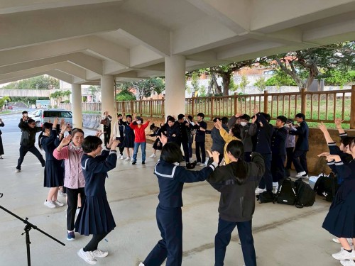 伊江島民泊ではそれぞれの民家さんで、かけがえのない体験をすることができました。離村式では、民泊先で練習した伝統の踊りを披露する生徒に合わせ、みんなで踊りました。帰りのフェリーでは涙を浮かべる生徒もいました。民家のみなさま、本当にありがとうございました。