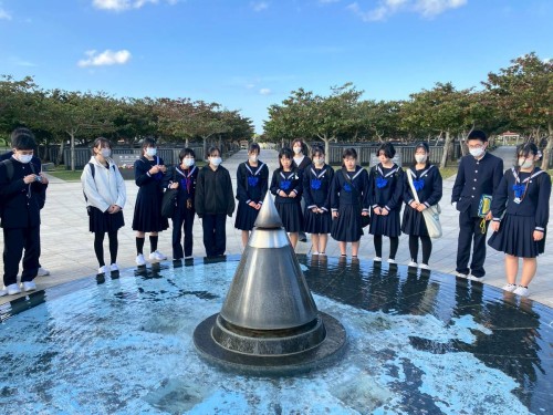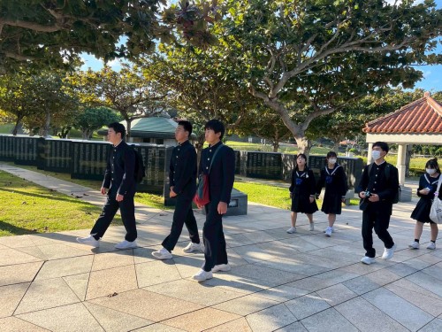 生徒たちは、館内外をまわり、沖縄での戦争の悲惨さを痛感し、さらに平和への思いを強めたようです。